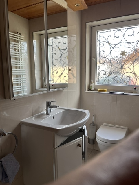 - Tageslichtbadezimmer mit Waschbecken , Duschkabine ebenerdig, WC