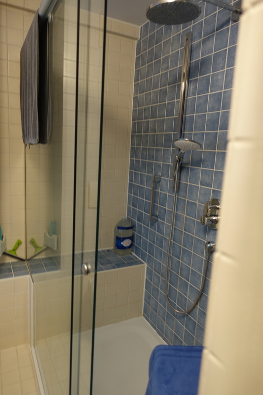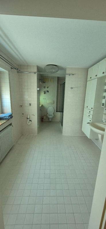 - großes Tageslichtbadezimmer mit Waschbecken, Spiegelschrank große begehbare Dusche, WC sowie Stellplatz für Waschmaschine und Trockner.