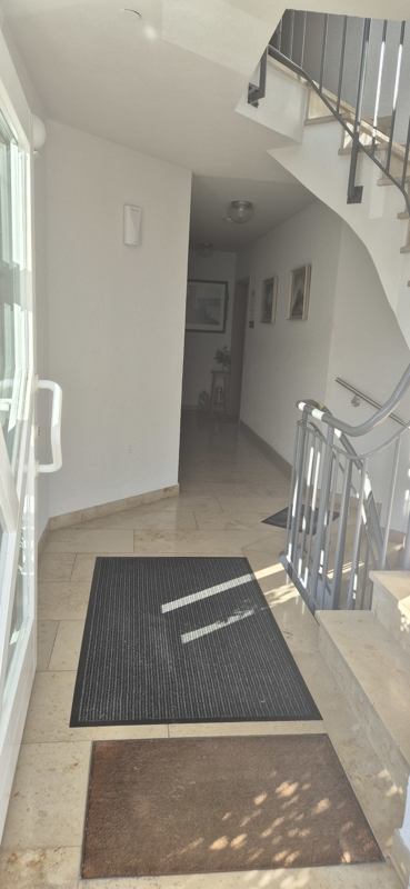 - im Flur und im Badezimmer sind Fliesen verlegt
